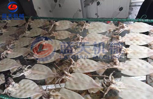 由于魷魚墨魚不僅水分大,而且水分存在于脂肪和油脂中,脫水就比其他類別的物料要更困難,而控制其脫水速度和排濕量是決定魷魚烘干質(zhì)量的重要因素之一,脫水速度和排濕量的掌握對保持海產(chǎn)品烘干后的色澤尤為重要。魷魚墨魚烘干要避免水汽在魷魚體表停留,排濕不暢,而導(dǎo)致細(xì)菌滋生。