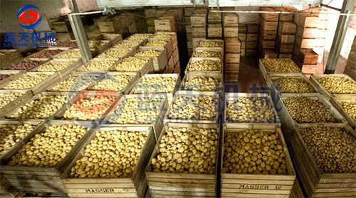 (6) 烘干:將處理好的馬鈴薯丁或薄片攤放烘盤上,厚度10~20mm,置于騏成全智能化烘干房中,溫度為65~70℃。干燥后期溫度勿超過65℃,完成干燥需要5~8小時(shí)。含水量降低到7%以下,即已完成干燥過程。