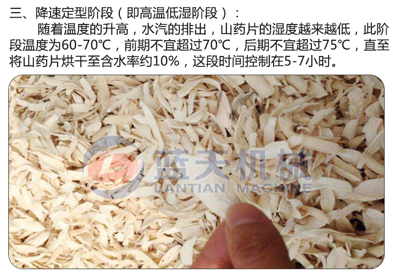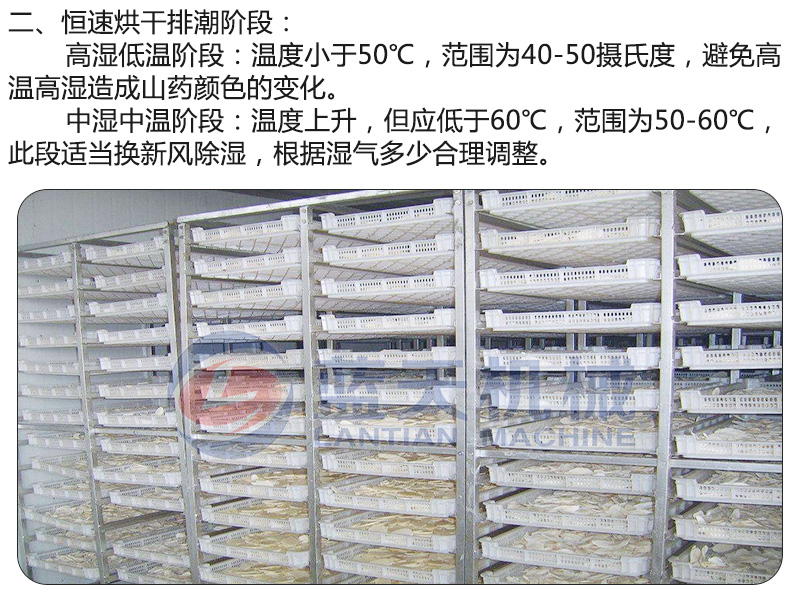 山藥的含水量大不宜長(zhǎng)期儲(chǔ)存,所以為了山藥的長(zhǎng)期保存,一般把山藥切片后用山藥烘干機(jī)進(jìn)行烘干處理。山藥切片的厚薄、烘干溫度、烘干時(shí)間的把控對(duì)于山藥片的烘干效果很重要。小編給大家介紹下使用山藥烘干設(shè)備烘干上藥片的烘干過程。