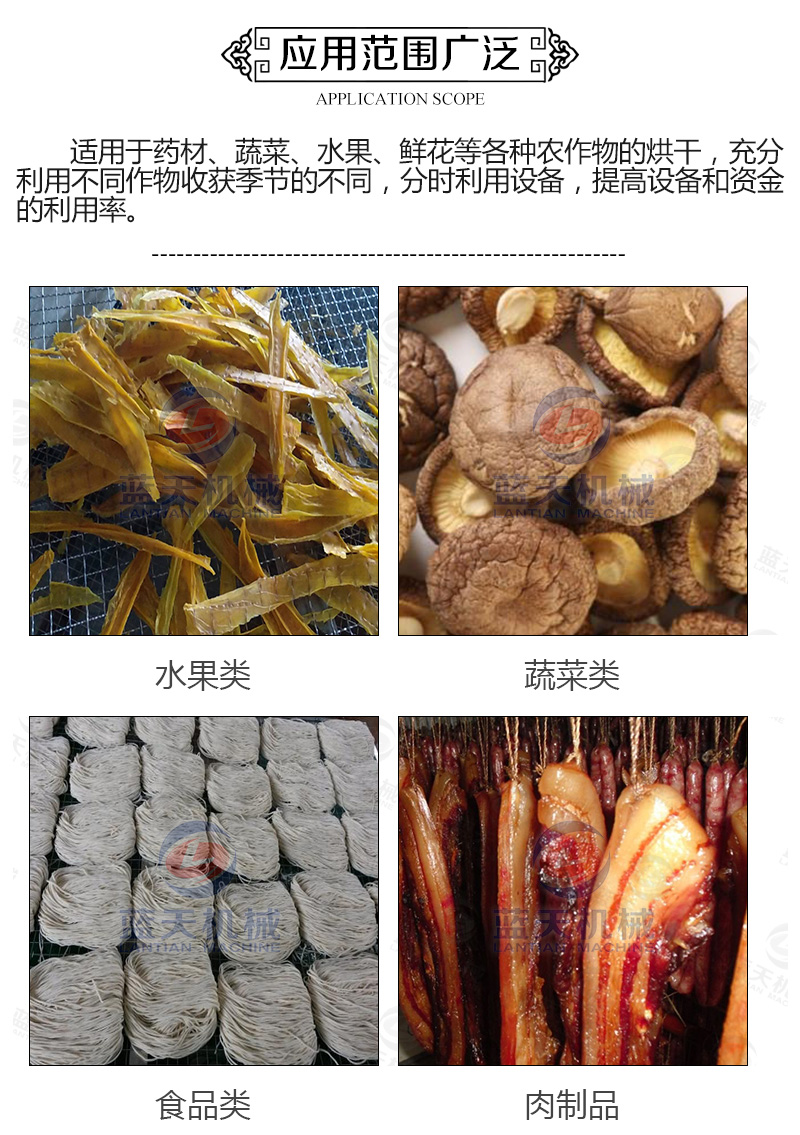 5、小型山藥烘干機(jī)空氣循環(huán)系統(tǒng)采用風(fēng)機(jī)循環(huán)送風(fēng)方式,風(fēng)循環(huán)均勻效率高。風(fēng)源由循環(huán)送風(fēng)電機(jī)(采用無觸點(diǎn)開關(guān))帶動(dòng)風(fēng)輪經(jīng)由加熱器,而將熱風(fēng)送出,再經(jīng)由風(fēng)道到山藥烘干機(jī)內(nèi),再將使用后的空氣吸入風(fēng)道成為風(fēng)源再度循環(huán),加熱使用。確保室內(nèi)溫度均勻性。
