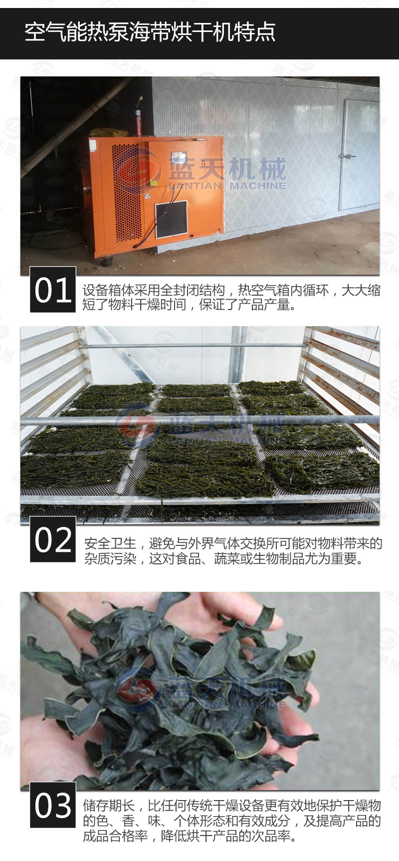 3、烘干時間—海帶烘干一般周期比較長,快速烘干一般都會破壞烘干質(zhì)量;