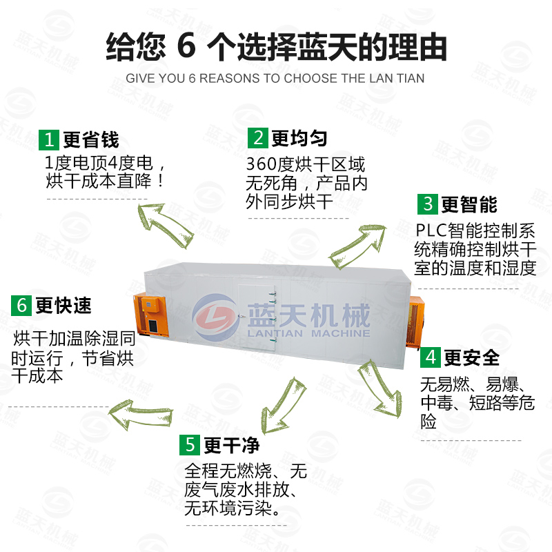 要達到以上的要求,那么烘干設(shè)備是很嚴格的。傳統(tǒng)的太陽晾曬等方法都是不合格的,海帶烘干機需要消耗少量的電就能從空氣能吸取大量的熱能使烘干房迅速升溫,同比傳統(tǒng)的烘干設(shè)備節(jié)能百分之六十以上。海帶烘干設(shè)備在常壓常溫下運行,烘干過程幾乎沒有污染物排放,不會對產(chǎn)品和環(huán)境造成污染。海帶烘干房是真正可靠的新型烘干設(shè)備。海帶烘干機烘干成本低,效率也高,提高了商家的利益,我們都知道海帶的價格是很便宜的,所以如果想要從中獲得利益,那么成本不能高,成本一高,也就掙不到什么。所以海帶烘干機是適合用來烘干海帶的。