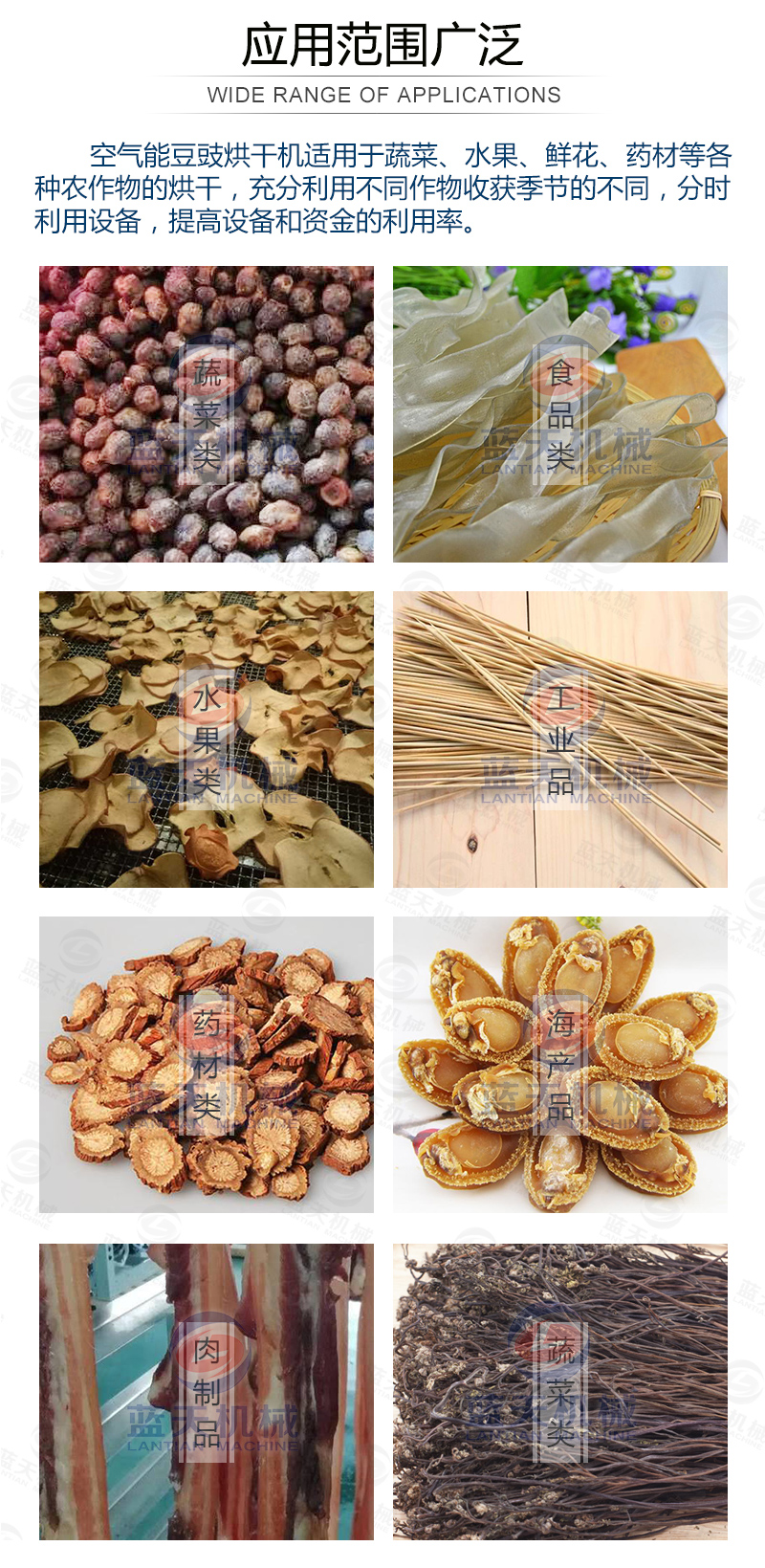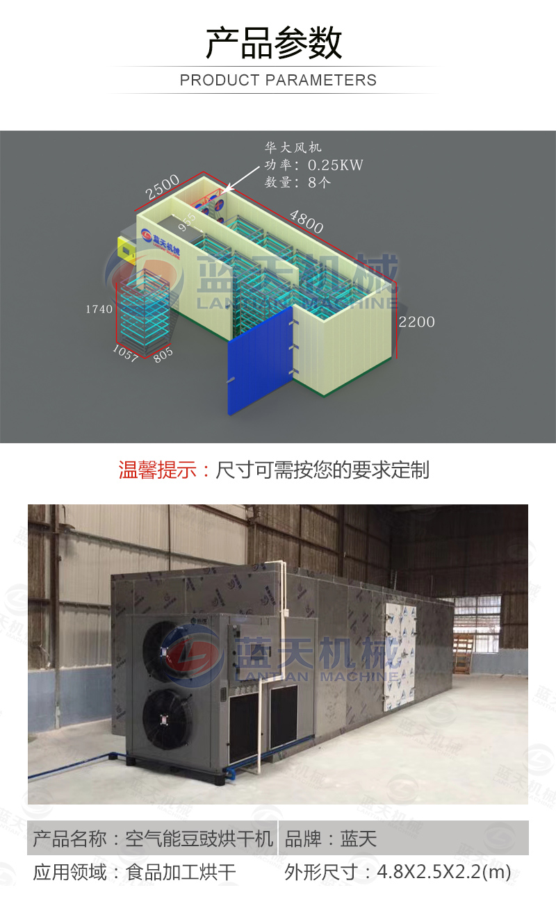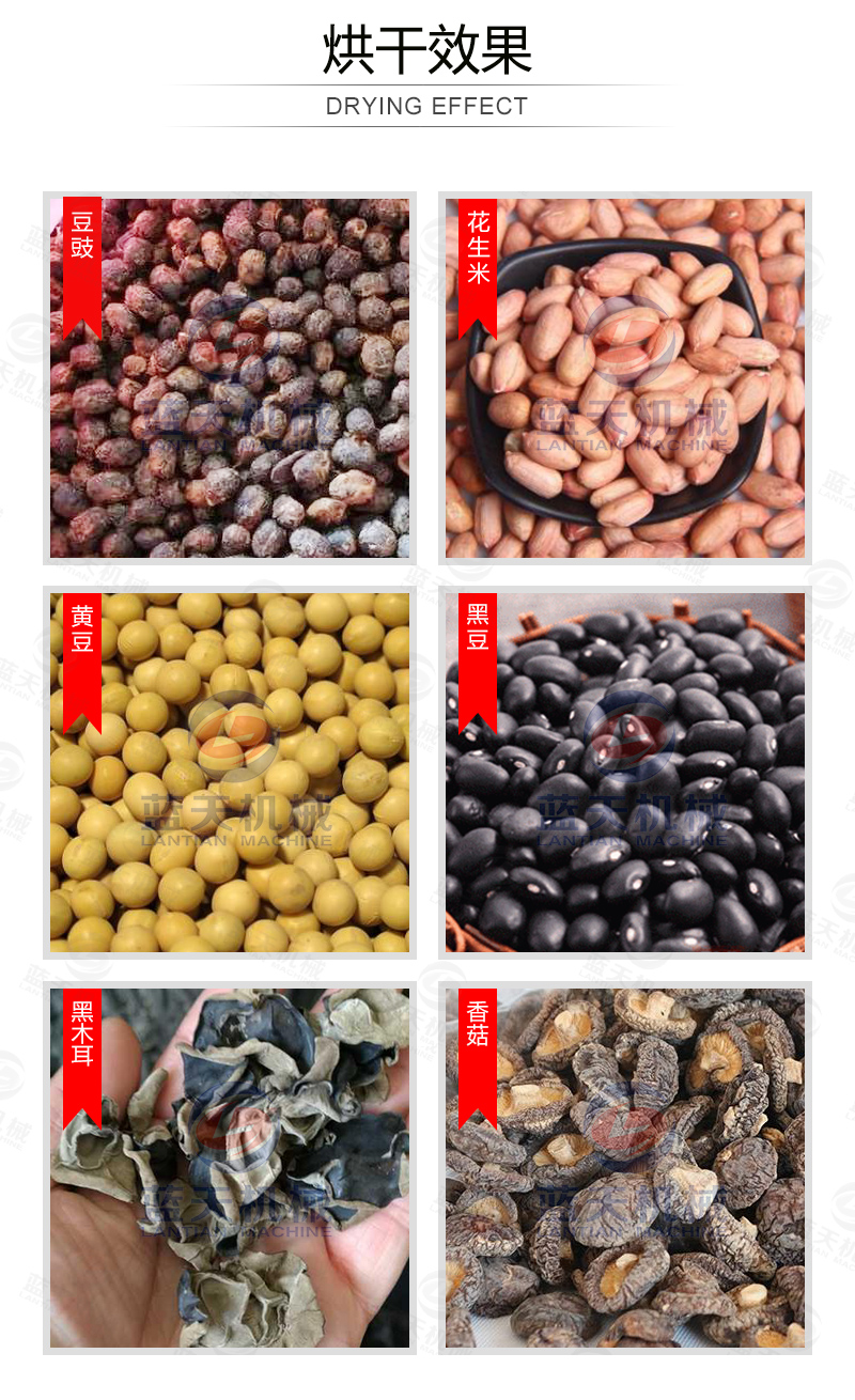 豆豉烘干機(jī)還可以用在魚粉、咖啡豆、蒜片、飼料顆粒、皮革污泥、大豆豆粕、油茶籽、山茶籽、玫瑰花、魚干,蔬菜,食品,辣椒等材料的烘干處理。
