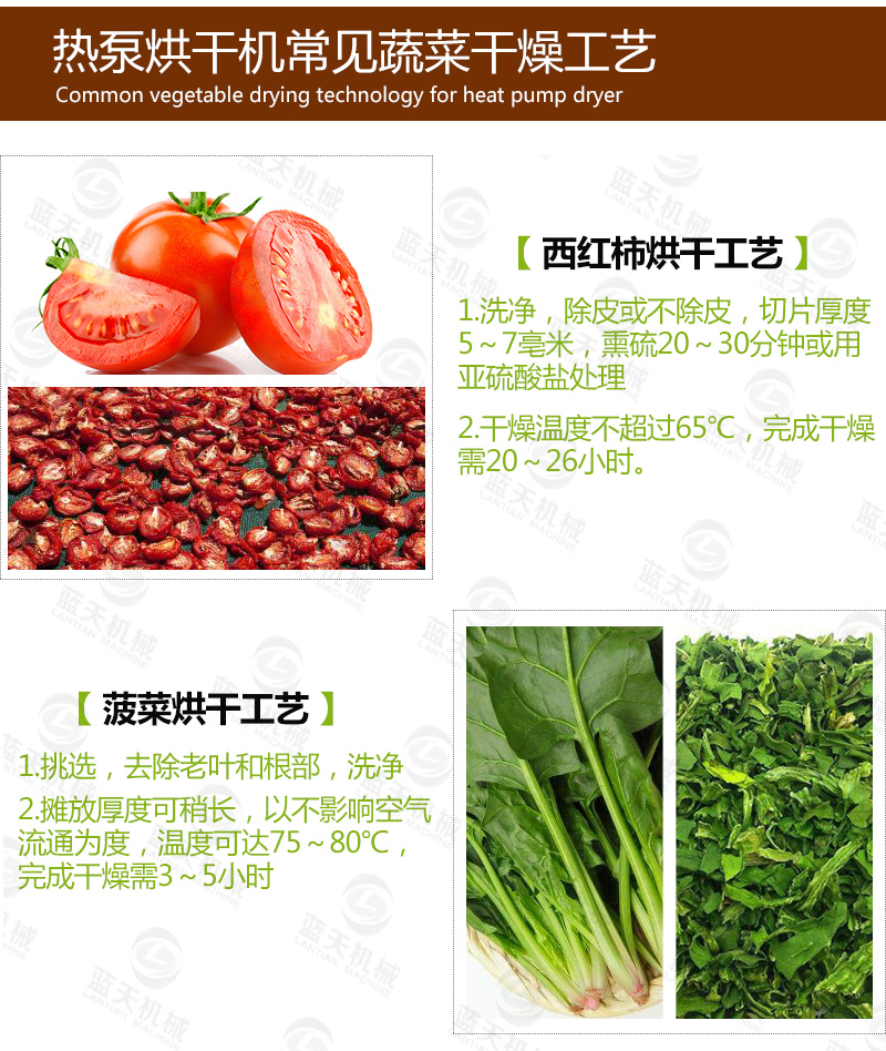2、烘干時間短。高溫熱泵烘干脫水蔬菜生產(chǎn)工藝,所需用的時間不會超過8h,一般從預熱到出產(chǎn)品4h即可完成。