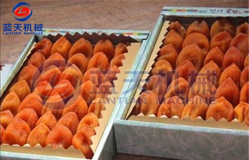 柿餅加工工藝流程:選果→去皮→裝盤→第一次烘烤→停烤→第二次烘烤→???rarr;第三次烘烤→???rarr;真空包裝→入庫(kù)。