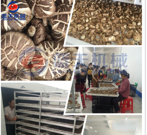 1:準(zhǔn)備好物料:采收前一天禁止?jié)菜?適時采收。香菇應(yīng)在四五成熟時采收,一般采收均不能超過八成熟。采收的香菇分好類,先在陽光下暴曬2-3小時,以去除部分水分。裝盤時使菌蓋朝上,菌柄朝下,擺均放正,不可重疊積壓,以防傷菇而影響質(zhì)量。香菇采收后6小時以內(nèi)必須烘烤,如果有冷藏條件,保存時間可適當(dāng)延長。