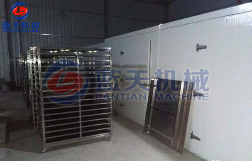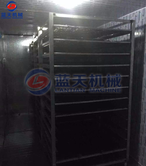1)將木耳或云耳一層層均勻擺放至特氟龍材質(zhì)的托盤后,放入不銹鋼物料車,推入木耳烘干房,木耳烘干時(shí)的溫度應(yīng)從35℃開(kāi)始,如果溫度過(guò)高,排濕跟不上,容易引起木耳變形。