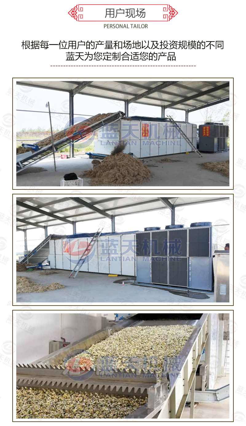 1、大型枸杞烘干機(jī)的尾部配冷卻段,可以對烘干出來的枸杞進(jìn)行及時(shí)冷卻。