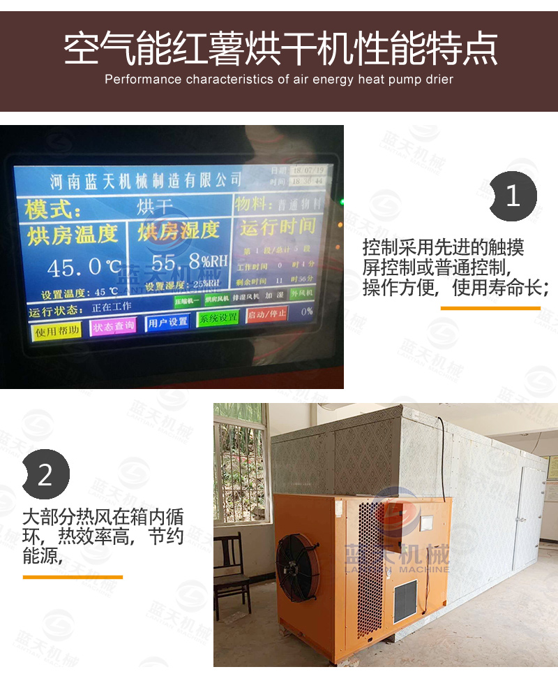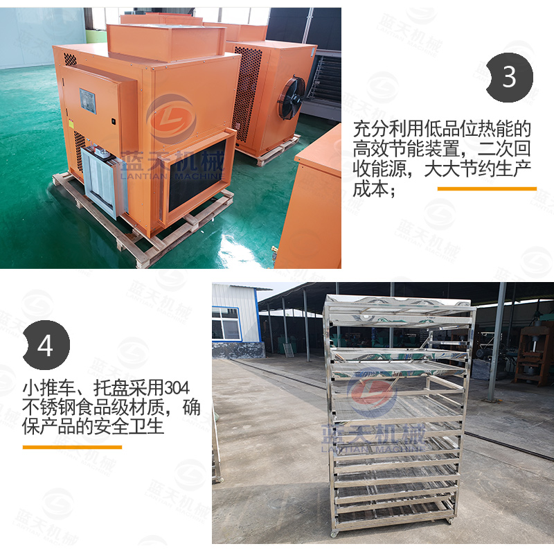 干燥烘干地瓜。干燥烘干地瓜有兩種辦法,一種是通過(guò)日曬的辦法,一般不下雨的情況下,在陽(yáng)光下曬4-5天即可,要定時(shí)翻轉(zhuǎn)。另一種辦法是利用地瓜干烘干設(shè)備進(jìn)行烘干地瓜,這種辦法適合量大,且不受天氣影響。開(kāi)啟地瓜干烘干設(shè)備。將已經(jīng)擺好托盤的地瓜推進(jìn)去地瓜干烘干機(jī)內(nèi),關(guān)閉房門。通過(guò)智能控制面板,設(shè)置好溫度和濕度,一般設(shè)置為四個(gè)階段,一階段設(shè)定45℃,定時(shí)2~3小時(shí)。二階段溫度設(shè)定50℃,定時(shí)3小時(shí)。三階段溫度設(shè)定60℃,定時(shí)3小時(shí)。四階段溫度設(shè)定70℃,定時(shí)3小時(shí)。一般用時(shí)12個(gè)小時(shí)即可。