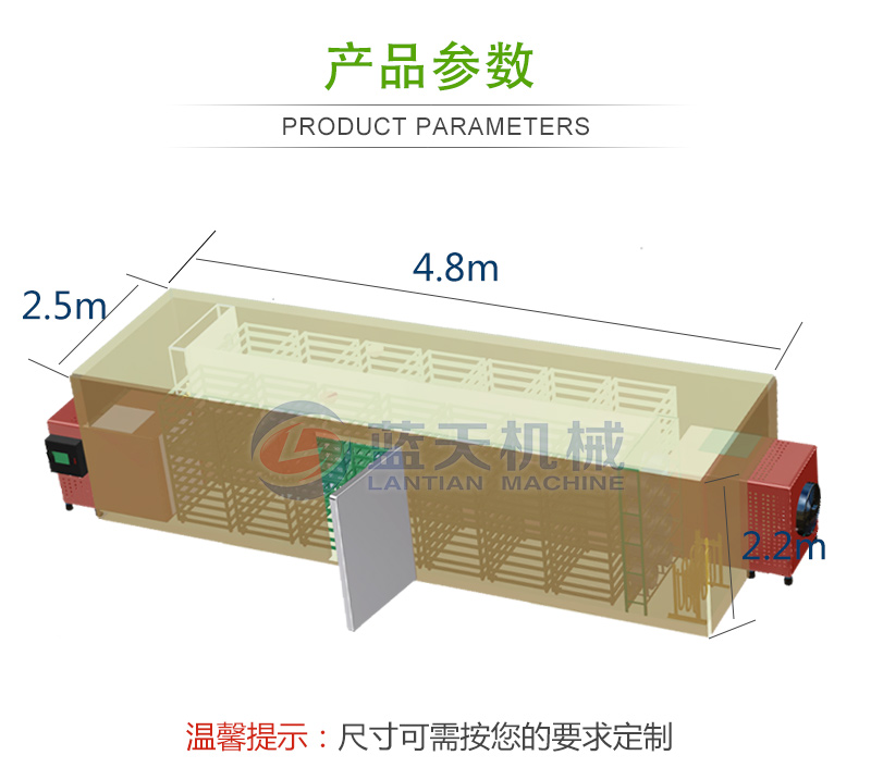 11、把蒜片均勻的鋪在蒜片烘干機設備的網格盤內,將網格盤插入物料車,將物料車推進烘干內。蒜片烘干過程中,溫度應控制在55~75 ℃之間,烘干時間為10~12小時。烘干后的蒜片標準為:片形正常、色澤凈白,水分含量為4~5%。