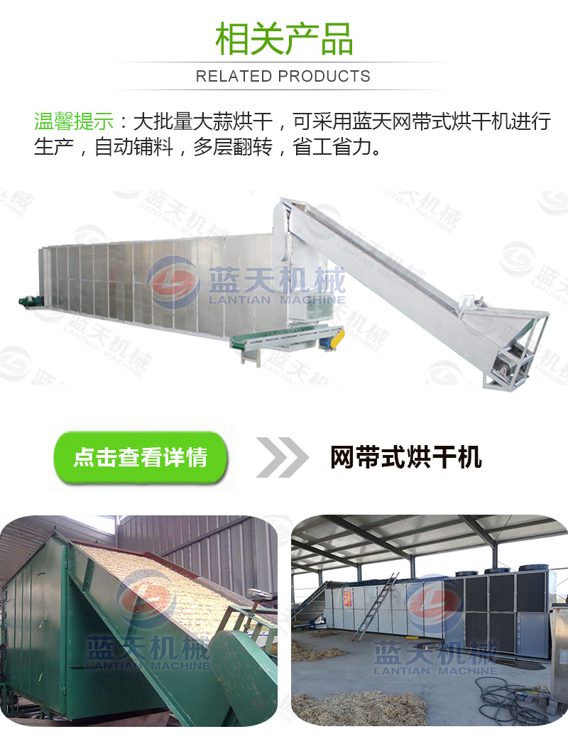 這些就是蒜片烘干機烘干大蒜片的基本流程了,希望能給您帶來些幫助,如果您看后想了解大蒜烘干機價格可以咨詢我們網站客服或直接電話聯(lián)系我們,歡迎您的光臨!