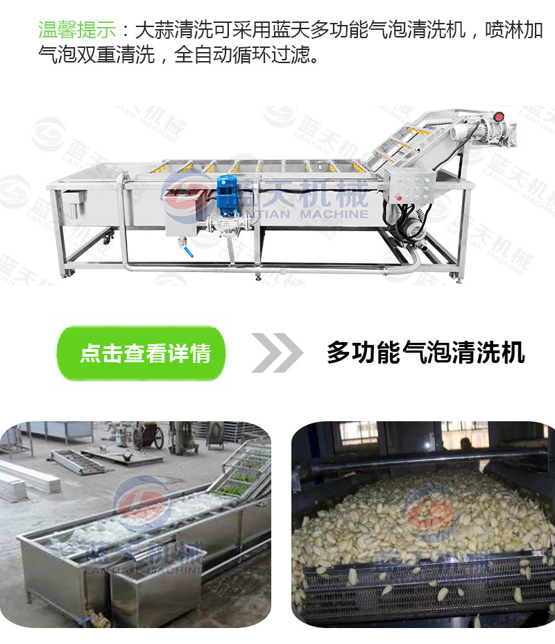 7、經過脫皮的大蒜少不了會沾些灰塵或臟東西,可用氣泡清洗機將去皮后的大蒜們好好洗洗干凈,得保證要脫水的大蒜們干凈衛(wèi)生。
