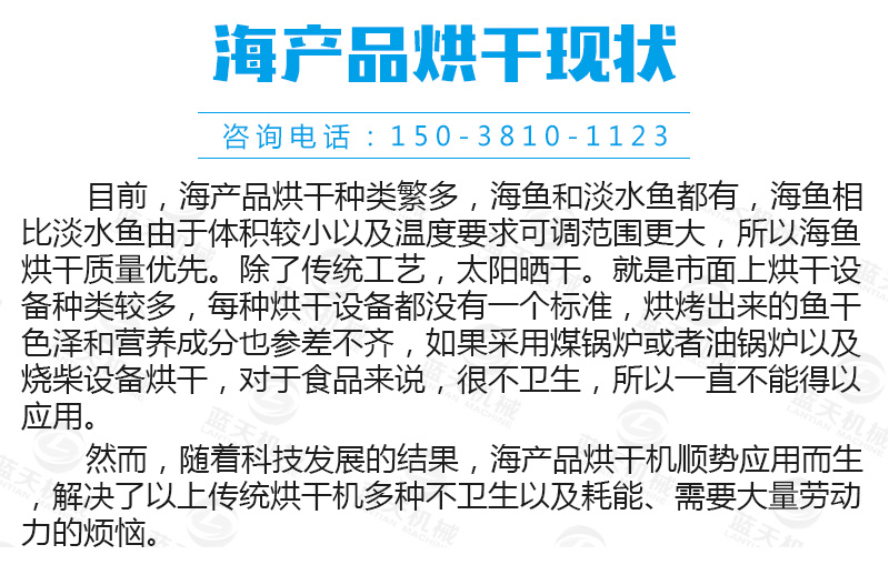 海產(chǎn)品烘干機(jī)設(shè)備不僅可用于烘干魚、蝦、海帶、殼類等海鮮產(chǎn)品,還廣泛應(yīng)用于農(nóng)業(yè)、工業(yè)、食品、化工等行業(yè),能滿足現(xiàn)有80%以上的原材料的干燥烘干和深加工。