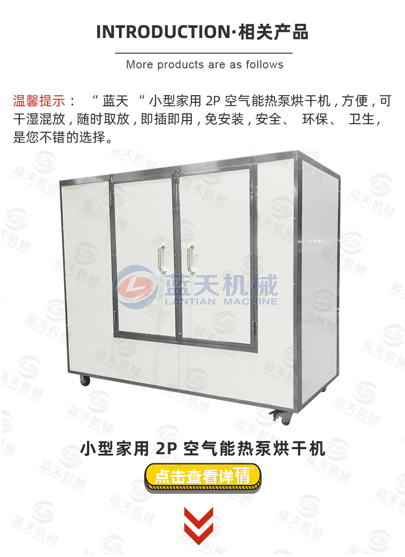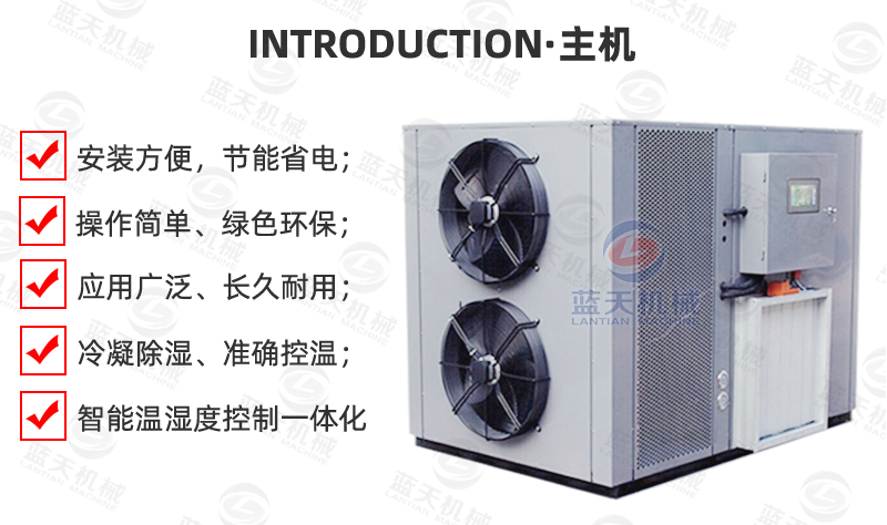 采用平流風(fēng)烘干運(yùn)行,另外根據(jù)龍眼的特性(初始水分含量高、溫度敏gan性高,糖分含量高),通常溫度控制在50-60℃,熱泵蒸發(fā)器吸收小型龍眼烘干機(jī)外的空氣,經(jīng)過循環(huán)的加溫過程,吸收龍眼肉中的水分,并經(jīng)過熱風(fēng)循環(huán)系統(tǒng)有效排濕及冷凝過程把龍眼肉的水分排出烘干房外,直至完成智能溫濕控制系統(tǒng)的指令,來實(shí)現(xiàn)龍眼烘干的優(yōu)化工藝,烘干完成約為12小時(shí)左右。