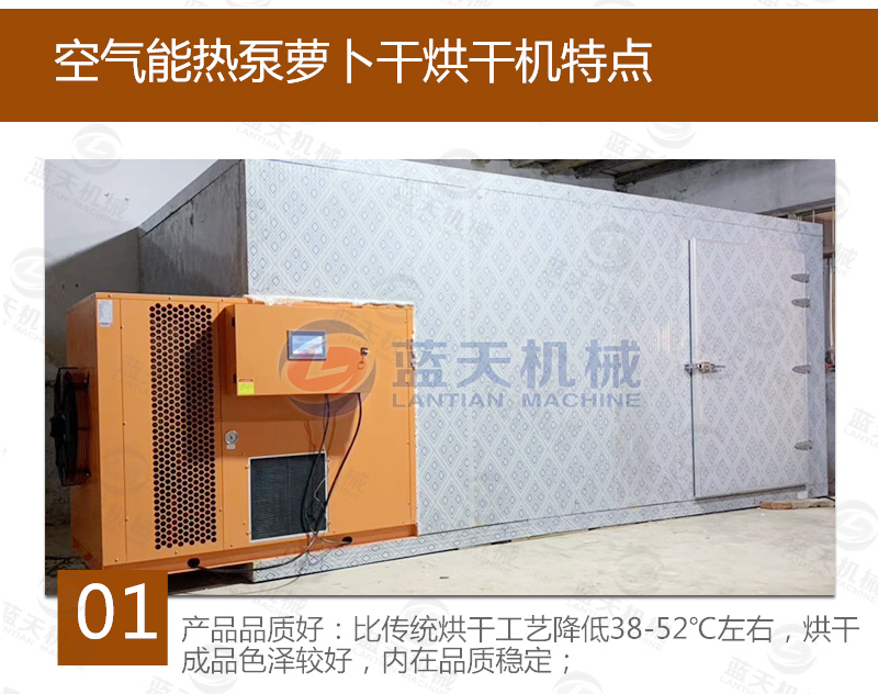 空氣能熱泵蘿卜干烘干機(jī),在蘿卜干烘干過程中的優(yōu)點(diǎn):